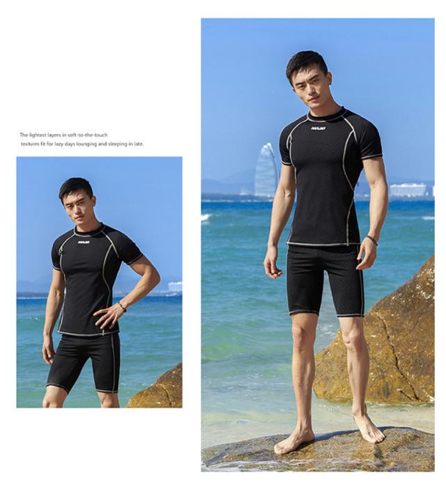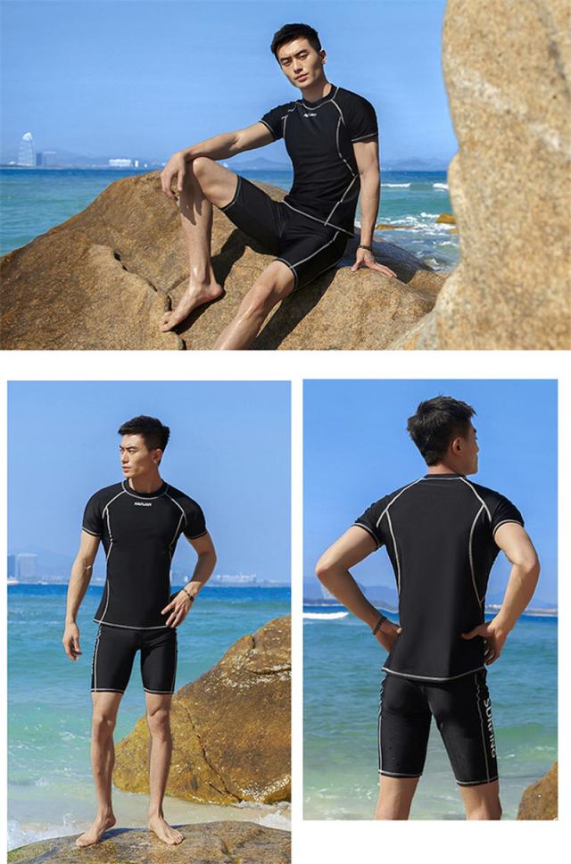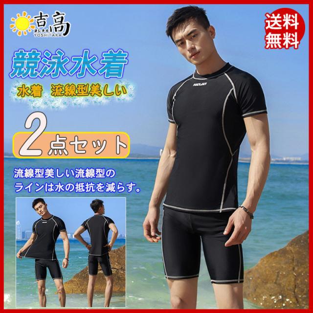 送料無料 水着 メンズ 上下セット 水泳 フィットネス スイムウェア 半袖 短パン 伸縮性 競泳用 快適 水陸両用 日焼け止め 体型カバー 海 温泉