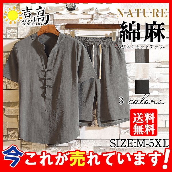 綿麻 上下セット メンズ 夏服 セットアップ 半袖Tシャツ 短パン 無地 リネン ショートパンツ スウェット サマー 涼しい ルームウェア 体型カバー
