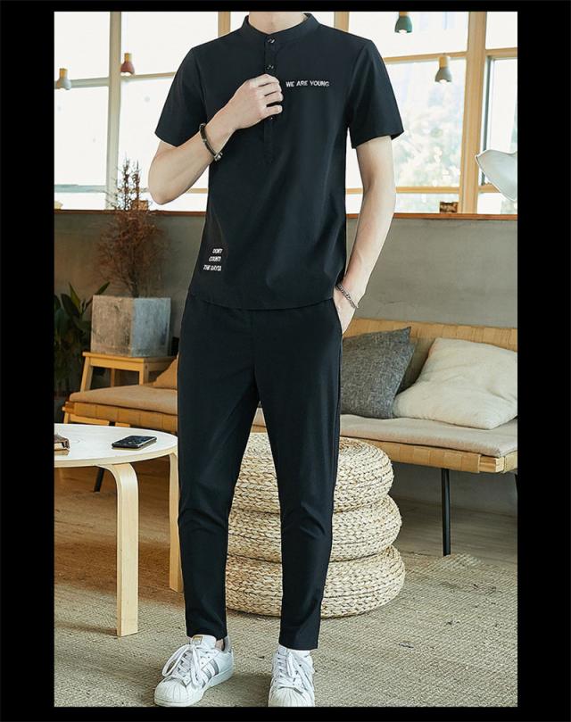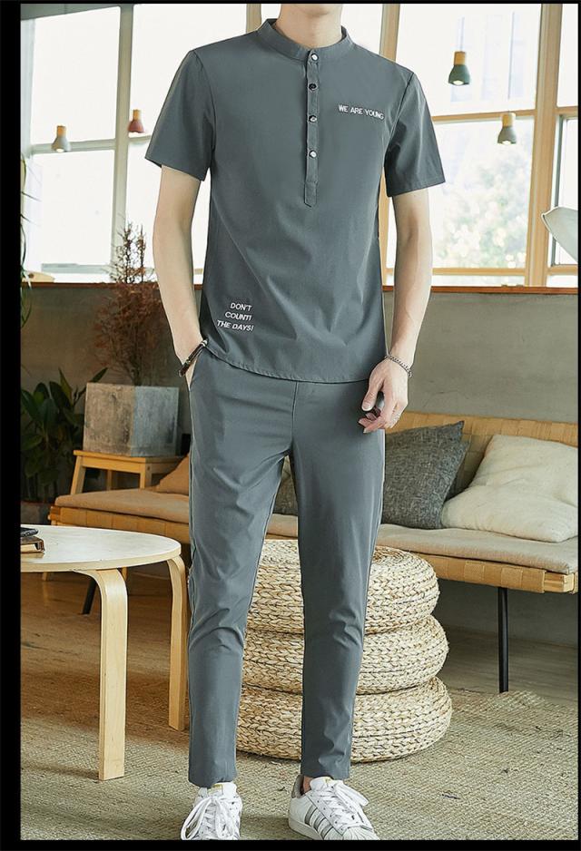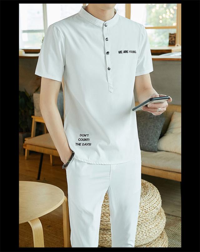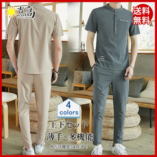 新作 セットアップ メンズ 綿麻セット リネン風 2点セット Tシャツ 長ズボン 英文字 無地 カジュアル ゆったり 薄手 涼しい おしゃれ 大人