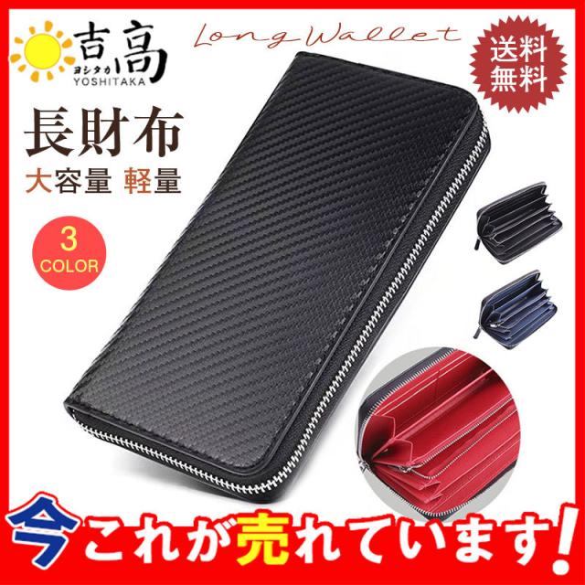 財布 メンズ 長財布 ダブルファスナー ロングウォレット レトロ カーボンレザー スキミング防止 無地 大容量 レディース ビジネス 父の日 ギフト