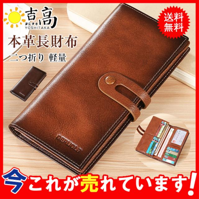 長財布 メンズ ロングウォレット 財布 本革 二つ折り バックル レトロ ロング 軽量 ビジネス 多機能 シンプル 無地 ギフト 高級感 父の日 上品