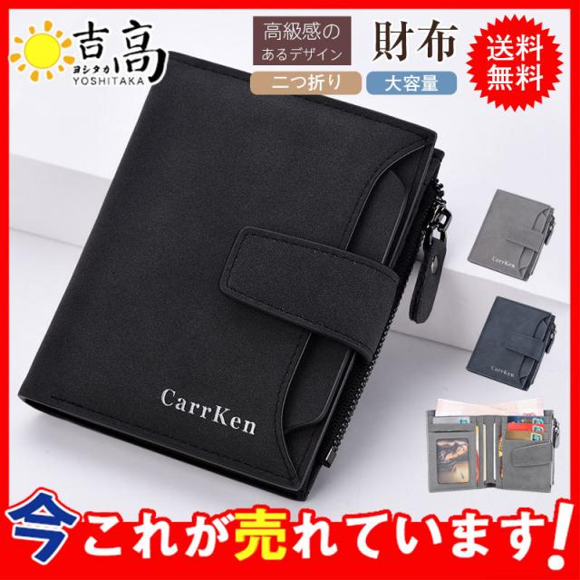 財布 二つ折り メンズ ウォレット 小型さいふ 大容量 無地 バックル カード入れ 小銭入れ コインケース ビジネス ギフト 父の日 学生 おしゃれ