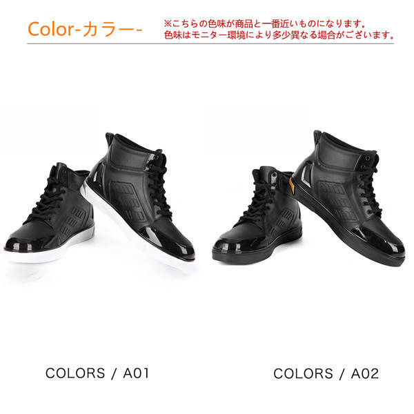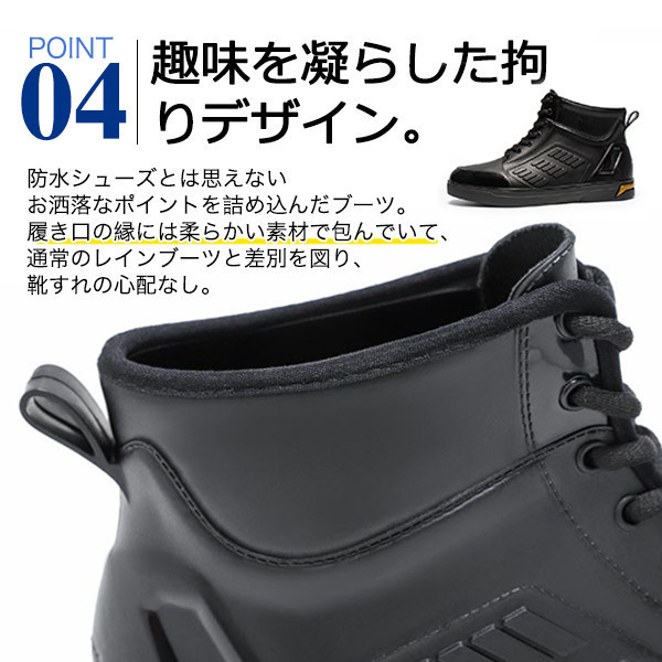 商品詳細:カラー:/A01/A02サイズ:/24.5/25/25.5/26/26.5/27■商品説明ハイカットタイプで水の侵入を防ぎ雨の日でも安心して出かけられます。雨の日もオシャレにきまるレインブーツ。デザイン性だけでなく、完全防水仕様や滑りにくい靴底など機能性にも優れているのがうれしいポイント。シンプルなデザインで雨や雪の日はもちろん晴れの日も違和感なく履くことができます。■製品仕様メイン素材: PVC表地: PVCヒールのタイプ: フラットヒール■キーワードレインブーツ メンズ レディース スニーカー風 長靴 靴 美脚 ショートブーツ ラバー 雨靴 晴れ雨兼用 きれいめ 便利 ショート丈 ショート 軽量 レインシューズ 防水 防滑 梅雨 ビジネス カジュアル アウトドア 通勤 通学 快適 痛くない ハイヒール 旅行 履きやすい シューズ 太ヒール 高見え 靴 滑り止め 着脱簡単 男女兼用 安定感 疲れにくい 滑らない 脱げない おしゃれ 幅広 無地 ミドル丈 エンジニア 超目玉 楽ちん 楽チン 安定性 通気 大人気 上品