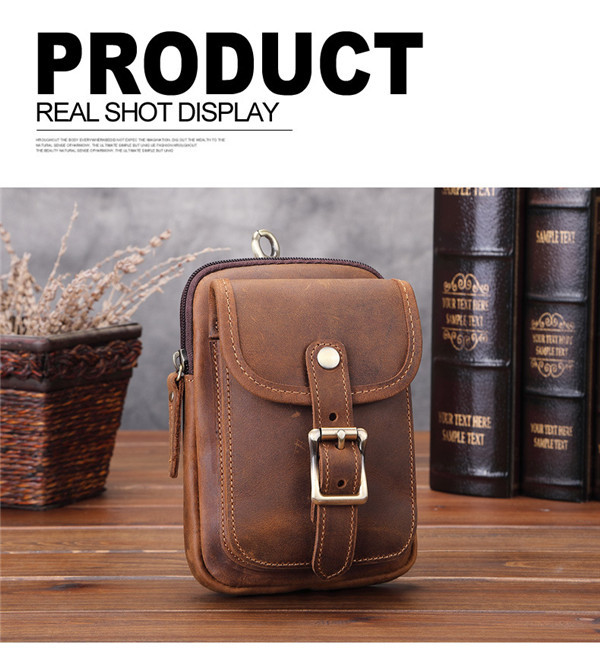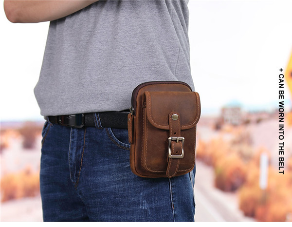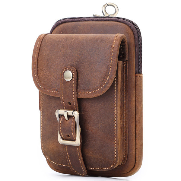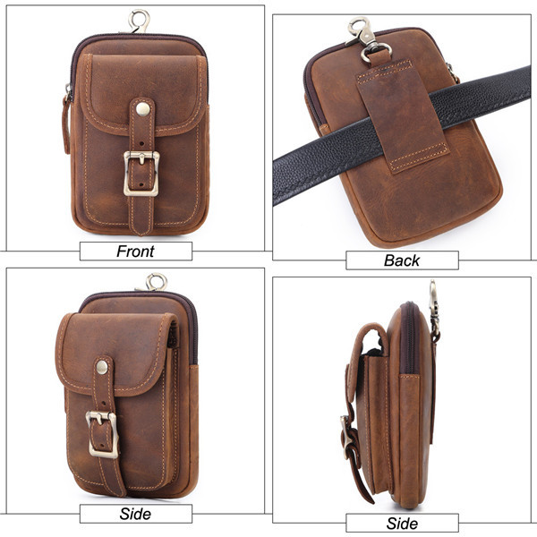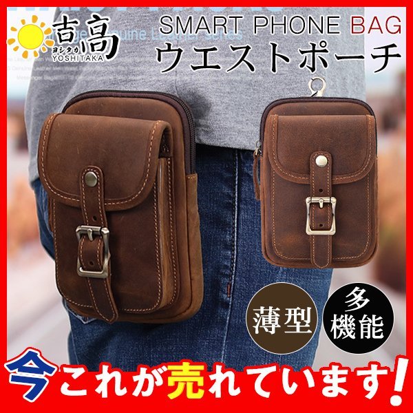 ウエストポーチ メンズ 本革 ベルトバッグ スマホポーチ カラビナ付き コンパクト 小物入れ スマホポシェット 軽量 多機能 スマホ収納 作業 旅行