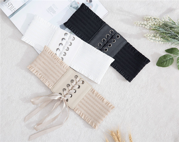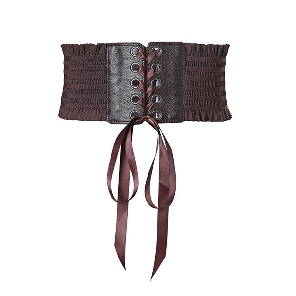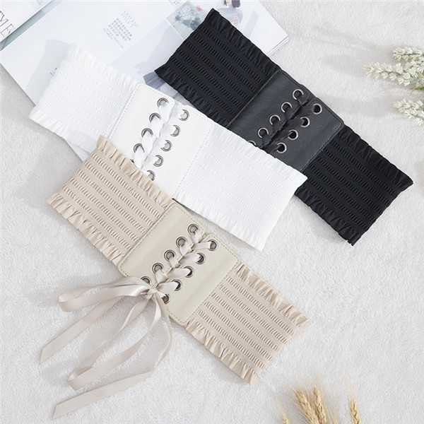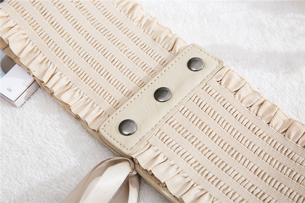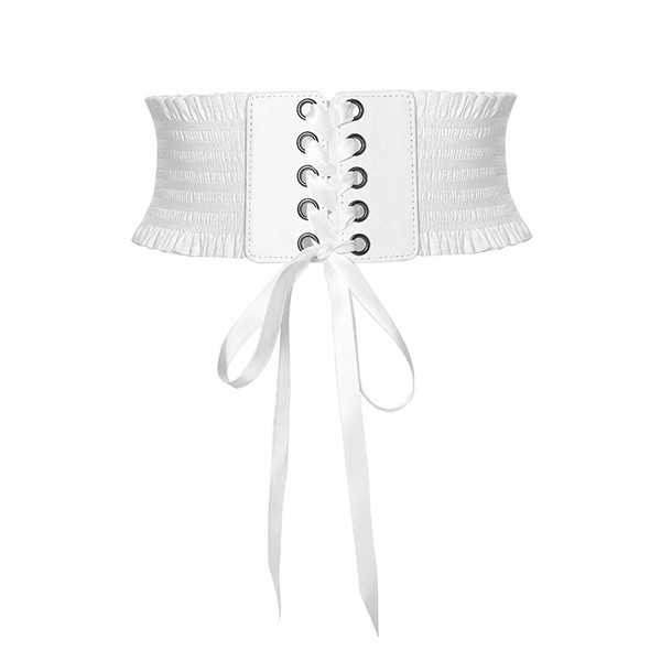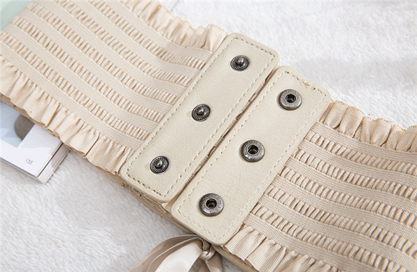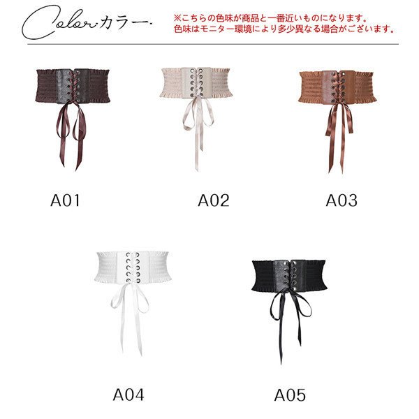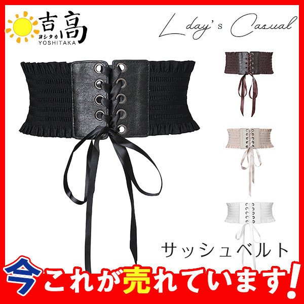 サッシュベルト 太ベルト レディース レースアップ リボン ワイドベルト フェイクレザー ゴムベルト 伸びる フリル付き スナップボタン付き お洒落