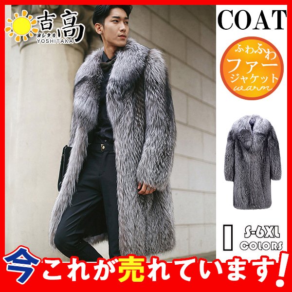 ファーコート メンズ ロング丈 フェイクファー 贅沢感 ふわふわ 秋冬着 暖かい 防寒 お洒落 毛皮コート オーバーコート 大きいサイズ 高級感