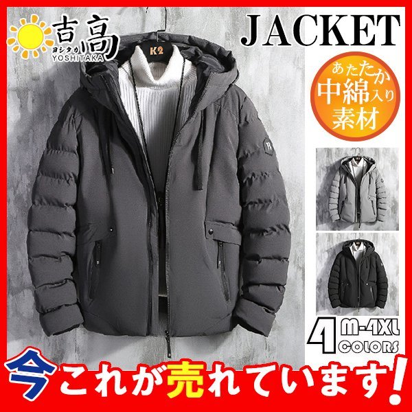 中綿ジャケット メンズ 中綿入り フード付き ダウンジャケット 防寒ジャケット 保温 秋冬 暖かい 防寒着 シンプル 紳士用 カジュアル アウトドア