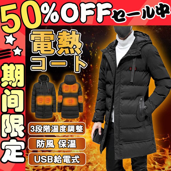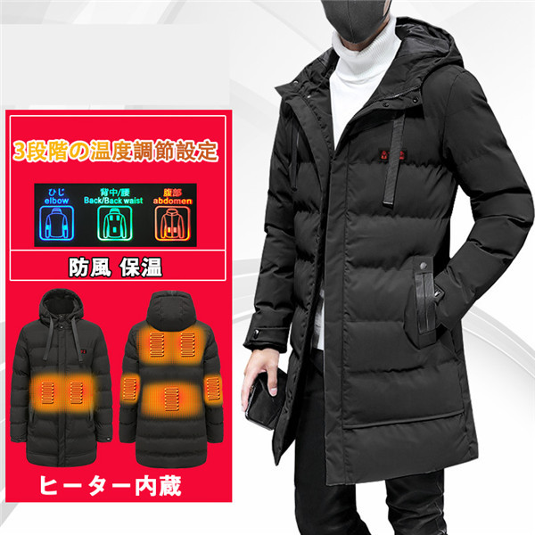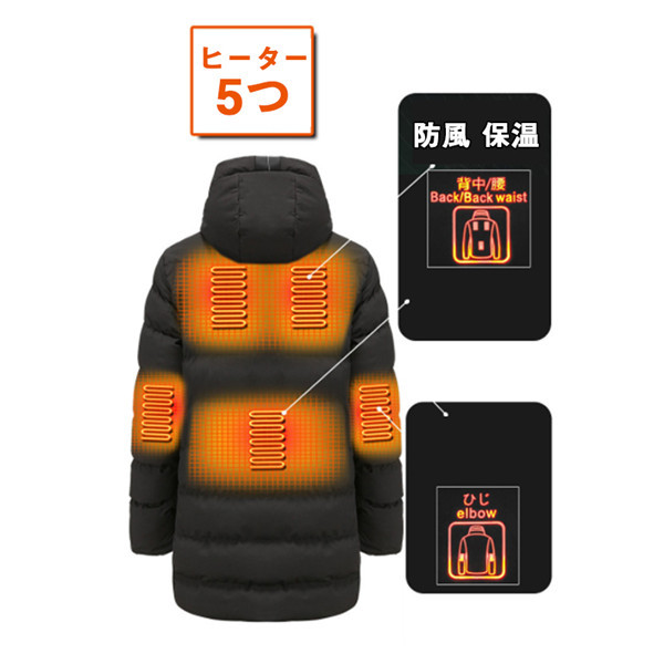 電熱ジャケット メンズ ヒーター マウンテンパーカー ヒーター7つ 中綿ジャケット ロング丈 極暖 速暖 登山 アウトドアウエア 防寒 電熱ウエア