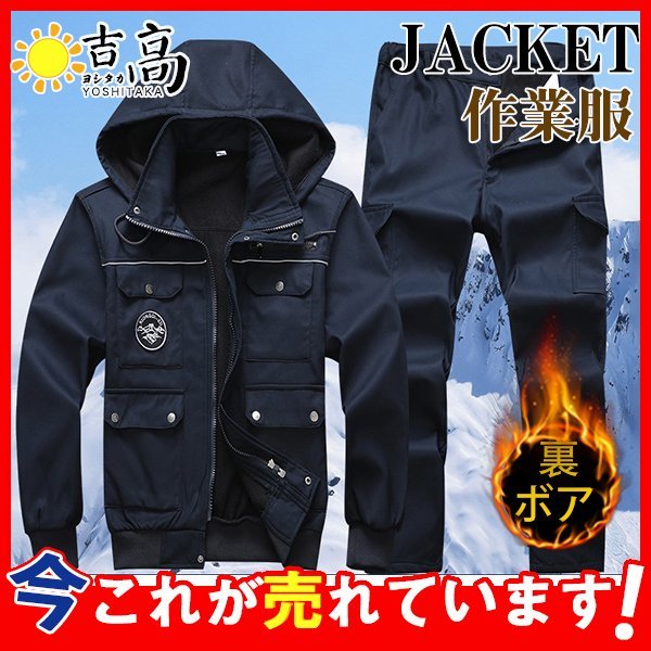中綿ジャケット 作業着 作業服 迷彩柄 厚手 裏ボア フード デッキジャケット 上下セット メンズ 防寒 お出かけ 保温 秋冬 暖かい ブルゾン