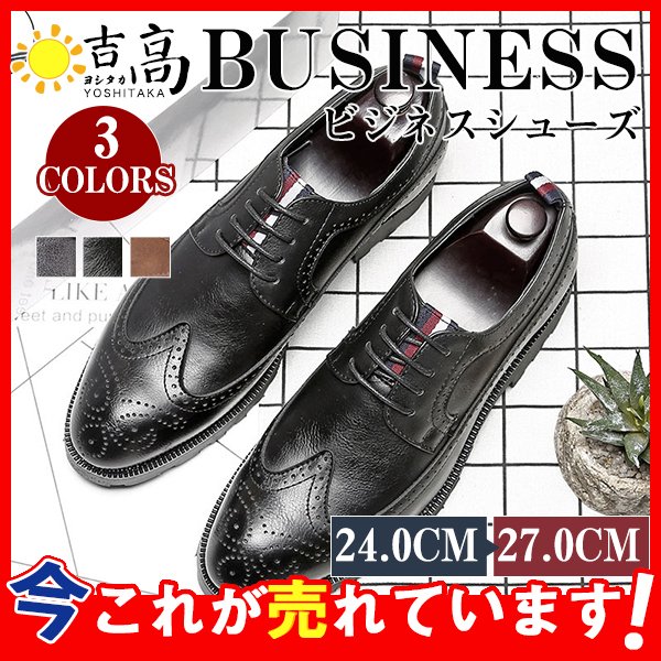 ビジネスシューズ メンズ 革靴 紳士靴 ウイングチップ ローファー 防滑 軽量 フォーマル PU レザー レースアップ 幅広 通勤 就活 合成革靴