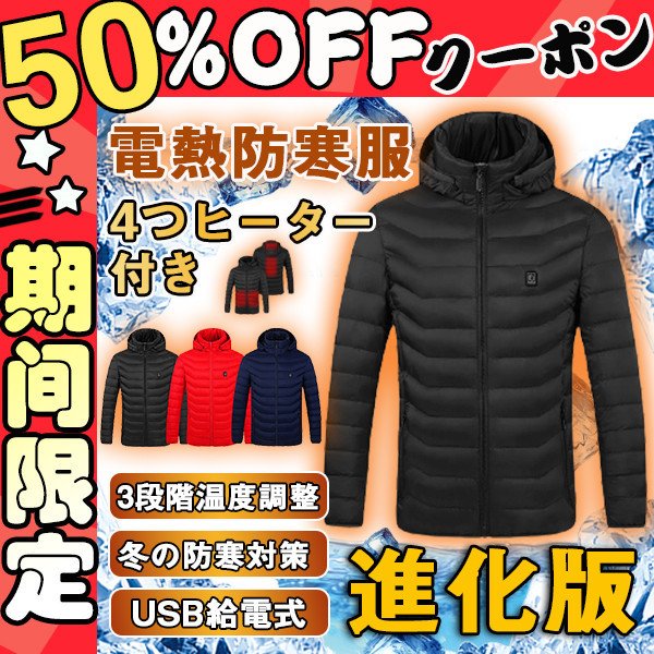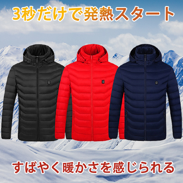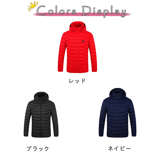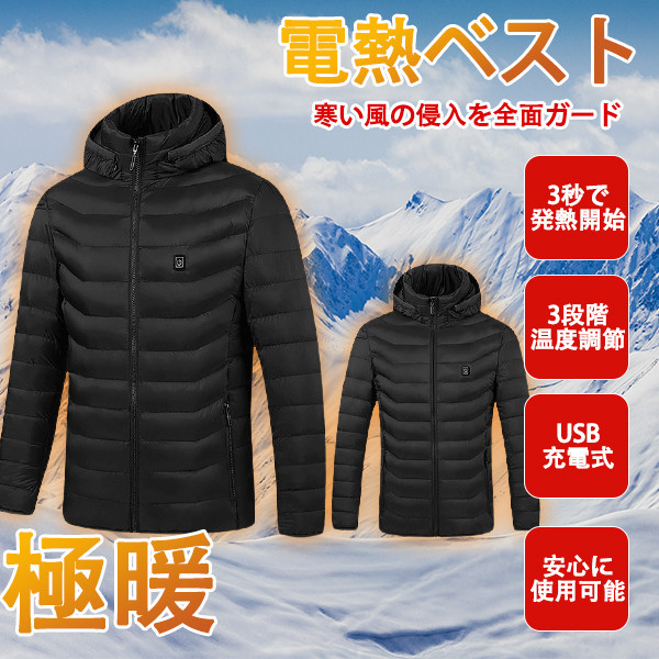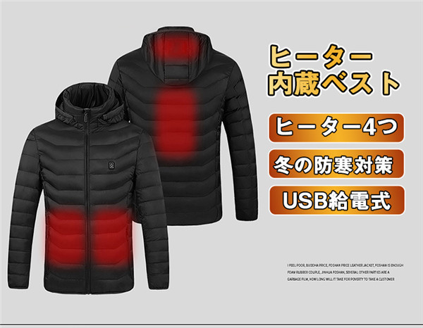 電熱ジャケット ヒーター 男女兼用 ヒーター4つ ダウンジャケット 加熱 中綿 メンズ レディース フード付き 内蔵 3段階 温度調整 USB 暖かい