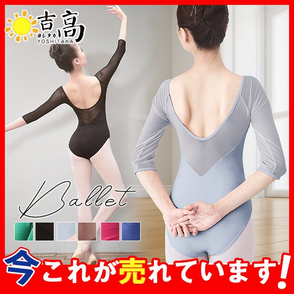 バレエ レオタード レディース 大人用 半袖 パッド取外し可能 ダンス衣装 ジュニア 新体操 レッスン 7分袖 エアロビクス 演出服 練習 舞台衣装