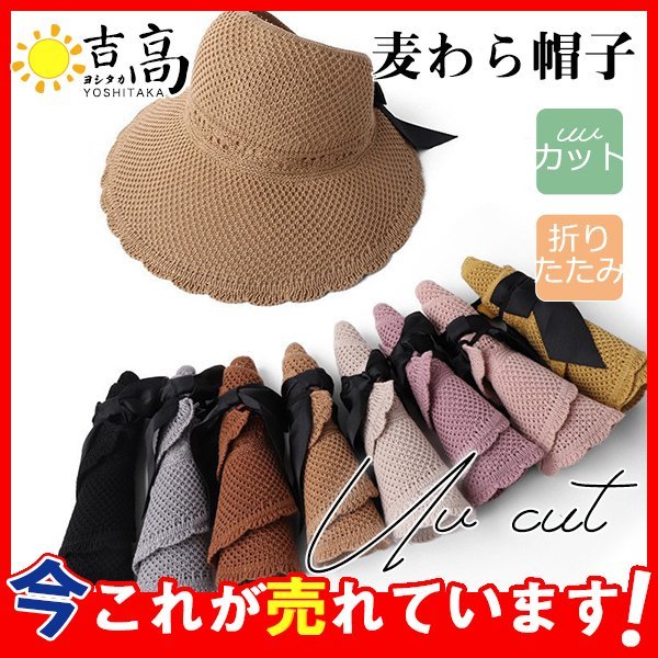 帽子 レディース 麦わら帽子 つば広ハット リボン サイズ調整可 折りたたみ 紫外線カット UVカット 大きいサイズ 夏 リゾート 旅行 おしゃれ