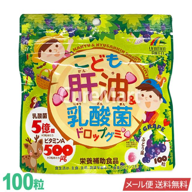 こども肝油&乳酸菌 ドロップグミ 100粒 ぶどう味 日本製 ユニマットリケン メール便 送料無料 肝油グミ 肝油ドロップ 子供 成長サプリ ビタミンD ブドウ