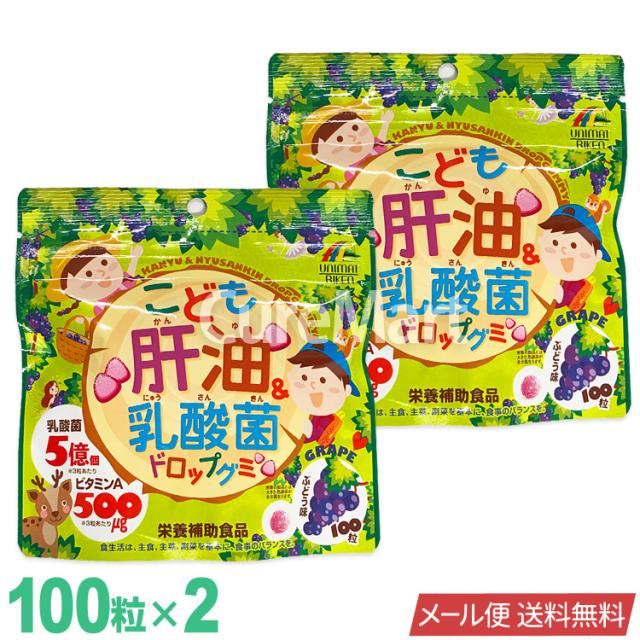 こども肝油&乳酸菌 ドロップグミ 100粒◆2袋セット ぶどう味 日本製 ユニマットリケン メール便 送料無料 肝油グミ 肝油ドロップ 子供 成長サプリ ビタミンD ブドウ