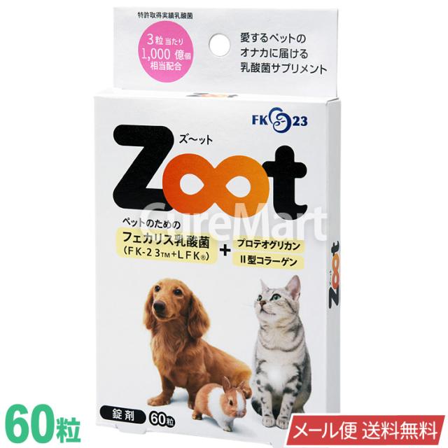 Zoot 60粒 ペット用 乳酸菌 サプリメント 日本製【 メール便 送料無料】 zoot フェカリス菌 FK23 LFK 犬 猫 小動物 ズーット ズート ニチニチ製薬 ZOO