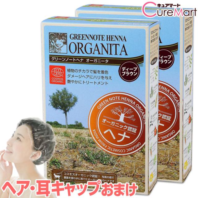 送料無料/ グリーンノート ヘナ オーガニータ ディープブラウン 100g◆2箱セット +[ヘア&耳キャップ] グリーンノート 有機ヘナ 白髪染め オーガニック ヘナカラー 毛染め トリートメント エコサート