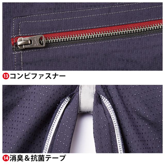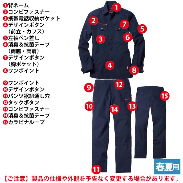 ◇機能:背ネーム・コンビファスナー・携帯電話収納ポケット・デザインボタン(前立・カフス)・左袖ペン差し・消臭抗菌テープ(両脇・両肩)・デザインボタン(胸ポケット)・ワンポイント