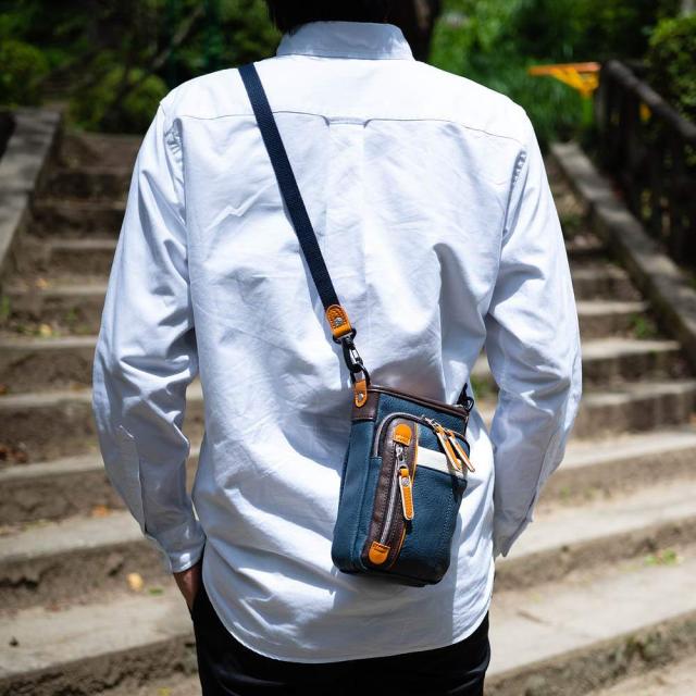 小型のアイテムでショルダーバッグとして使えるほか、ベルトに通して使ったり、カラビナをベルトループに通して使うこともできます。