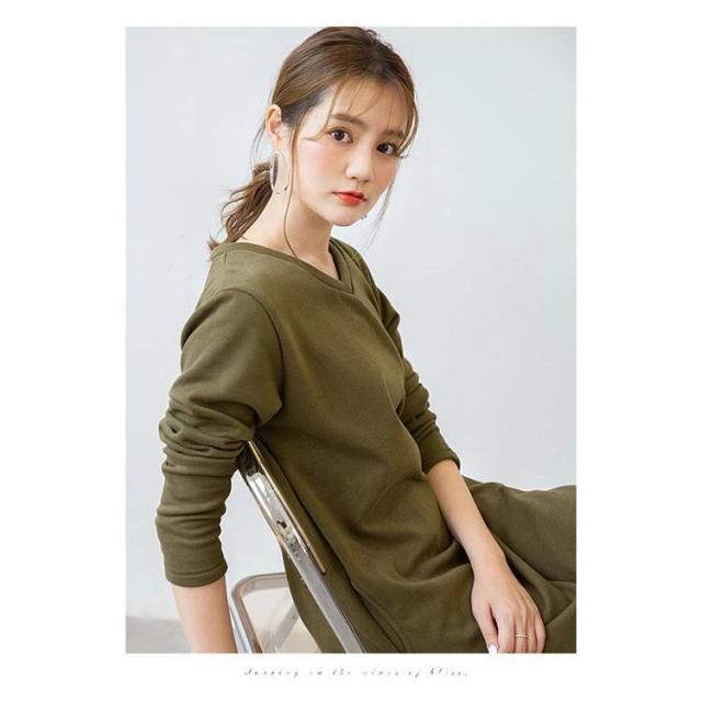 | 【商品名】 ワンピース 裏起毛 ロング丈 マキシ丈 ワンピー Uネック Vネック スウェット 2タイプ ワンピース あったか 暖かい 防寒 ポケット付き 部屋着 ルームウエア マタニティー レディース |