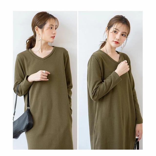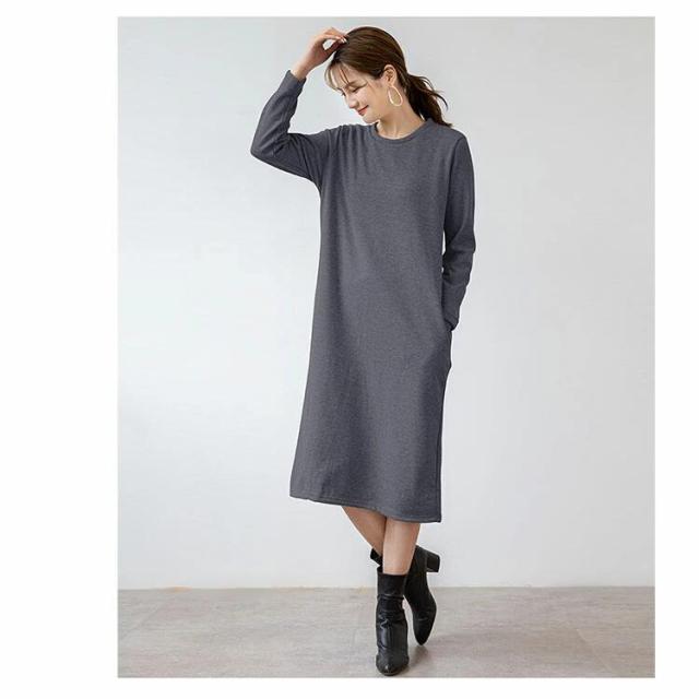 裏起毛ワンピース 秋冬 ナチュラル リラックス 膝下 大人可愛い