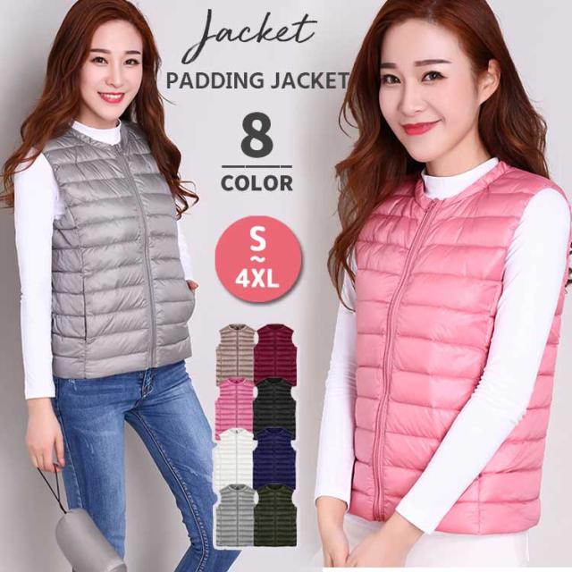 ダウンベスト レディース コンパクト インナー ダウン 無地 軽量 ショート丈 ライトダウン ベスト 大きいサイズ ラウンドネック ファスナー式 ダウン ベスト 秋冬 S/M/L/XL/2XL/3XL/4XL 全8色 羽織り ショートアウター カラフル 暖かい 防寒着