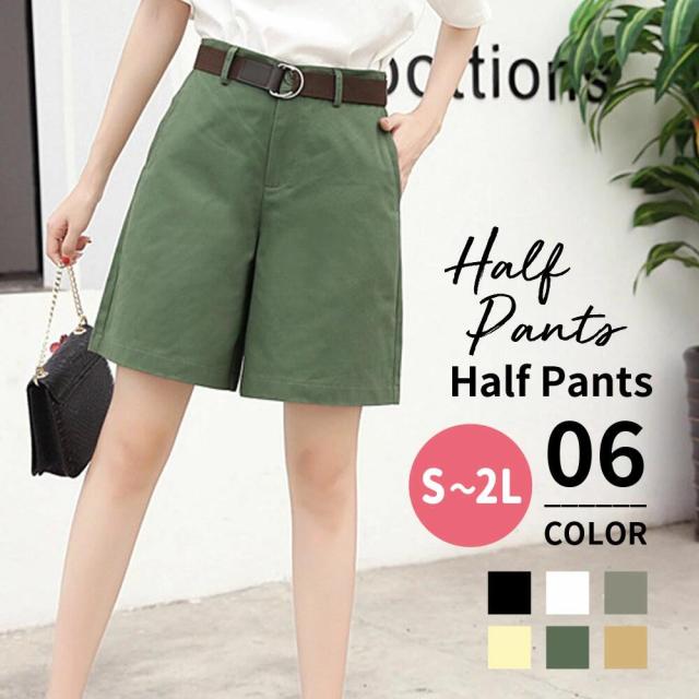 ハーフパンツ レディース かわいい ショートパンツ 夏 春 秋 ボトムス ショート チノパン 短パン 膝上 ハイウエスト 台形 涼しい 大きいサイズ おしゃれ きれいめ 大人 可愛い 無地 カジュアル アウトドア 山ガール ミリタリー 黒 白 ホワイト カーキ