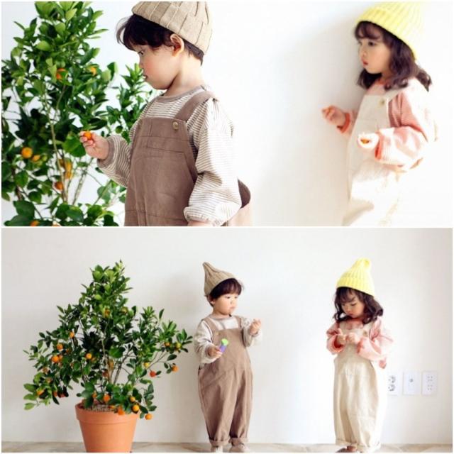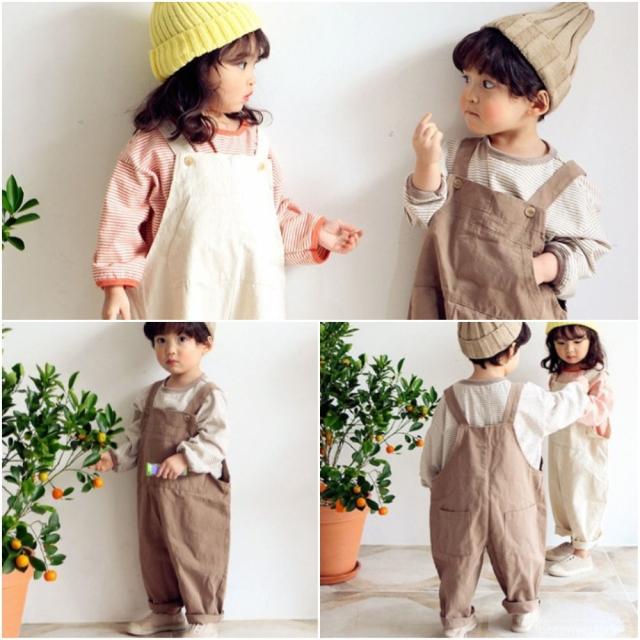 | 【製品について】 トレンドのキッズサロペット! 着回しやすいシンプルなカラーなので大活躍間違いなしです。 インナー次第でオールシーズン着用いただけます! お友達や兄弟姉妹でお揃いにするととても可愛いです♪ |