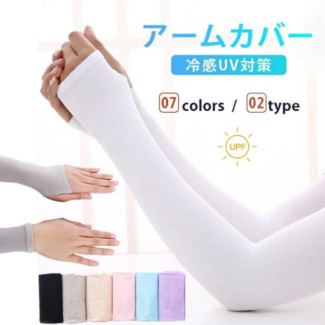 送料無料 腕カバー 2タイプ スマホ対応 接触冷感 日よけ 虫除け