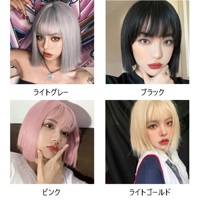 ショートウィッグ コスプレウィッグ ボブウィッグ うぃっぐ wig つけ毛 直毛 和装 ダンサー オシャレ 結婚式 イベント パーティー 女性 つむじ 耐熱 灰色 グレー ブラック ゴールド 母の日 プレゼント ギフト 20代 30代 40代 50代 60代