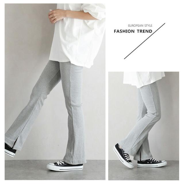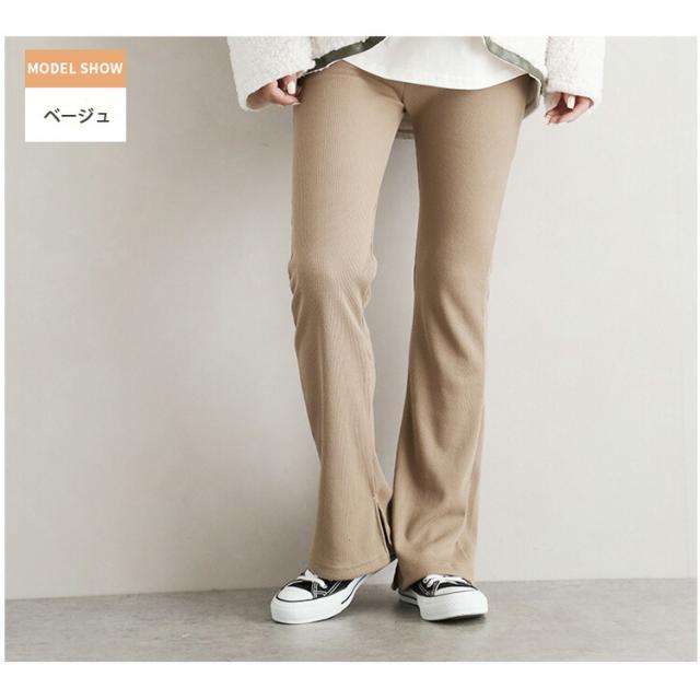 ニットパンツ レディース ブーツカット パンツ ロング スリット リブニット フレア ウエストゴム ストレッチ リラックス イージーパンツ ベルボトム 無地 きれいめ ゆったり おしゃれ カジュアル シンプル 黒 ブラック 白 ホワイト 全6色