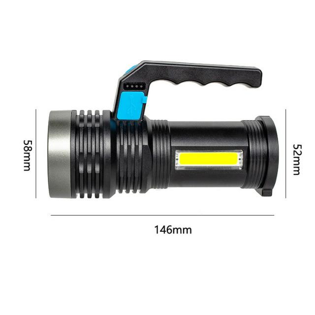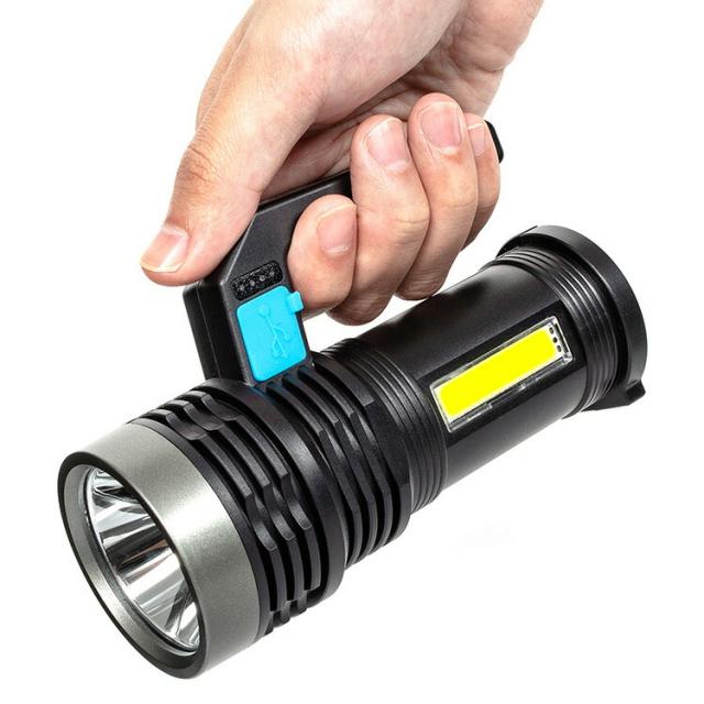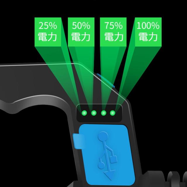 | 【製品について】 *スイッチを押すと、高輝度→弱輝度→SOS→オフをすばやく切り替えることができます。 *COBハイライトは、照明やメンテナンスに使用できます。 *5V1A~2AのUSB出力ポートを使用して本体を充電できます(モバイルバッテリー、車載充電器など)。 充電時間は約2〜4時間です。 *電量表示:一つは25%の電量を表してます。(4つ全部点灯は電量100%で、一つだけでは25%です)。 *約500メートのLEDライト照射距離と350ルーメンという明るさで暗がりを明るく照らす最強電灯。 |
