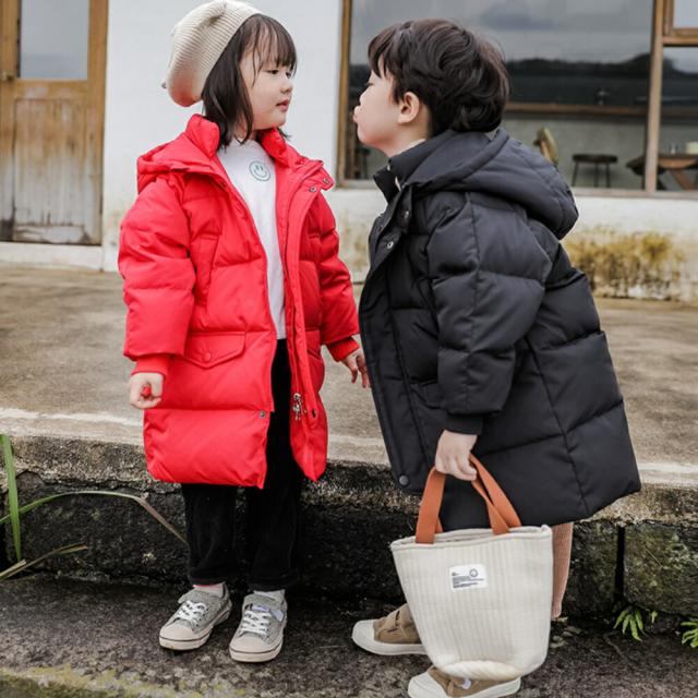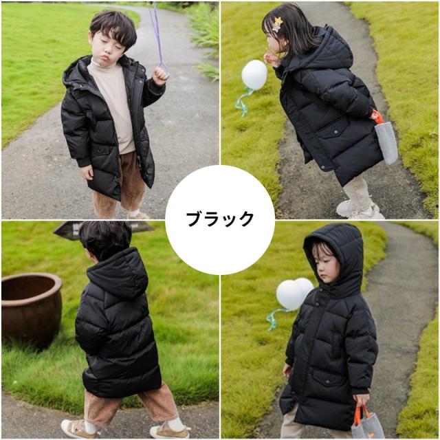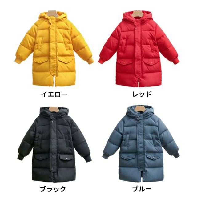 ダウンジャケット キッズ ダウンコート 男の子 女の子 子供 秋冬 ミドル丈 フード 子ども ジュニア 幼児 軽量 おしゃれ ゆったり 可愛い 韓国 カジュアル あったか 軽い 暖かい 防寒 防風 極暖 無地 黒 赤 青 イエロー 100 110 120 130 140 150 160