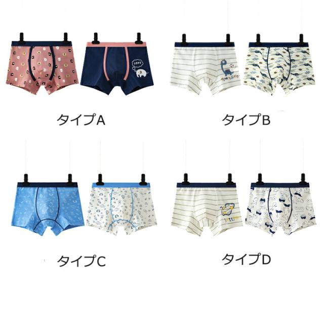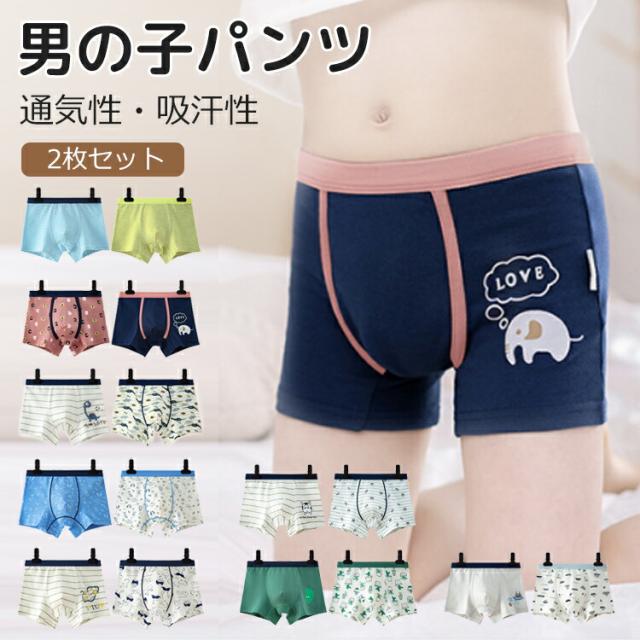 【2枚セット】 ボクサーパンツ キッズ パンツ 下着 男の子 男児 子供 ボックス 肌着 インナー 綿 コットン 前閉じ おしゃれ 可愛い かわいい 蒸れない 子ども こども ジュニア 幼児 幼稚園 保育園 小学生 まとめ買い 110 120 130 140 150 160 170cm