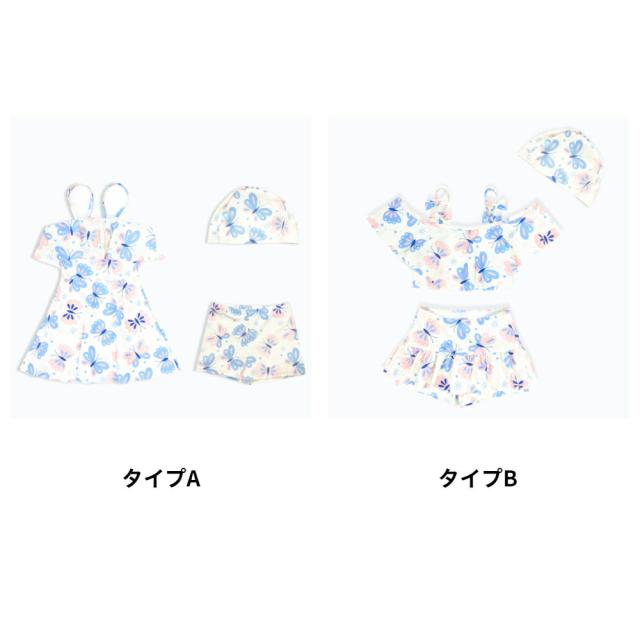 | 【製品について】 蝶々柄が可愛いキッズスイムウェアセット! 2タイプからお好みのタイプを選べます。 幅広いサイズ展開なので姉妹でお揃いコーデにするのもおすすめです! |