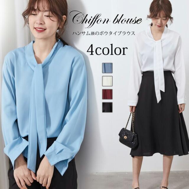 とろみ ブラウス レディース 長袖 ボウタイ オフィス シワになりにくい フォーマル シャツブラウス リボン トップス きれいめ 大きいサイズ おしゃれ 大人 可愛い 上品 エレガント 無地 通勤 ビジネス 事務服 結婚式 入学式 卒業式 白 黒 赤 ブルー