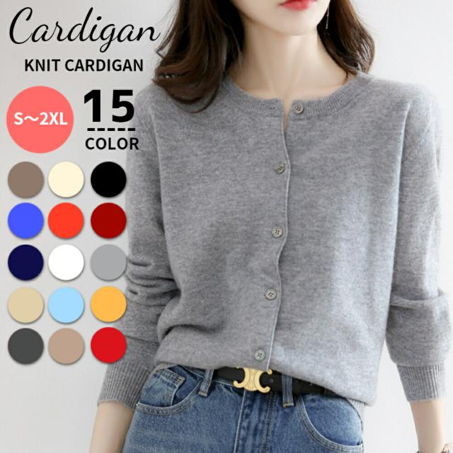 ニットブラウス 春 秋 冬 上品 オフィスカジュアル 重ね着 無地 カーデガン コーデ ラウンドネック クルーネック 大人可愛い オシャレ カジュアル シンプル あったか 細身 ボタン ポケット 着痩せ 冷え防止 通学 女性 学生 ママ 婦人 ブラック ホワイト レッド ブラウン ネイビー イエロー オレンジ ブルー 20代 30代 40代 50代 母の日 プレゼント ギフト