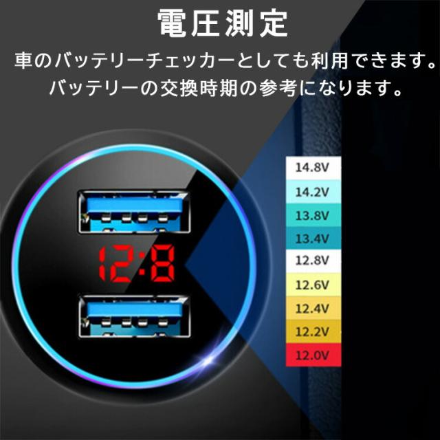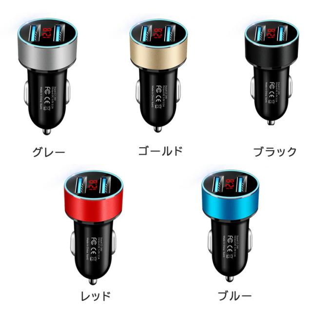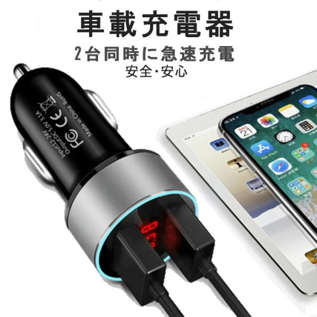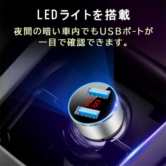 カーチャージャー シガーソケット usb 車載充電器 急速充電器 2連 24v対応 12v 24v コンセント 携帯充電器 スマホ充電 led ライト 電源 電圧計 車 チャージャー おしゃれ 小型 コンパクト iphone android ipad アイフォン アンドロイド 便利 カー用品