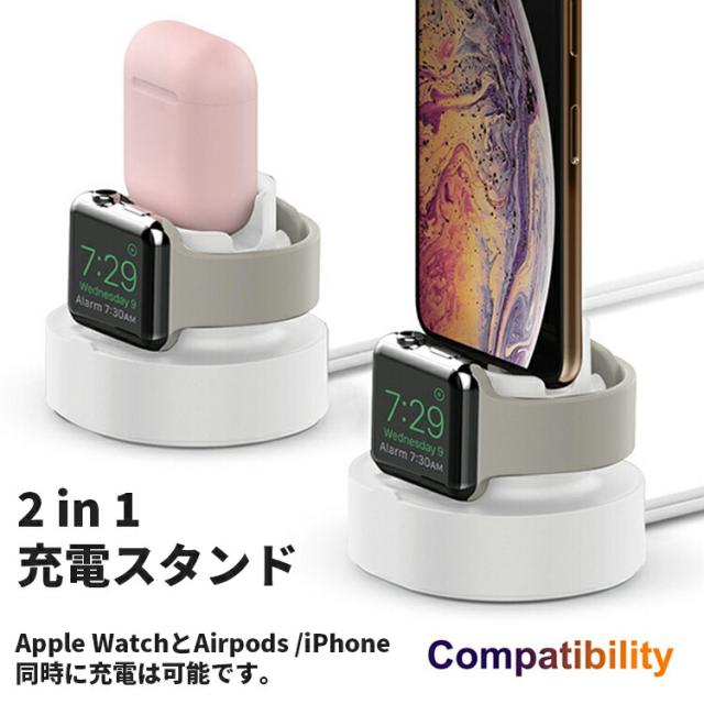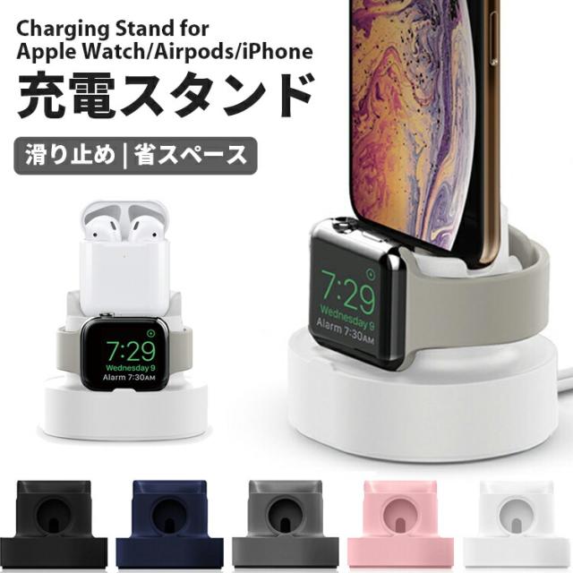 iphone apple watch airpods 充電器 アップルウォッチ アイフォン 充電スタンド 充電ドック スマホスタンド 充電しながら 充電クレードル ホルダー シリコン 同時充電 多機能 おしゃれ 可愛い 小型 コンパクト 持ち運び 黒 白 ピンク グレー ネイビー