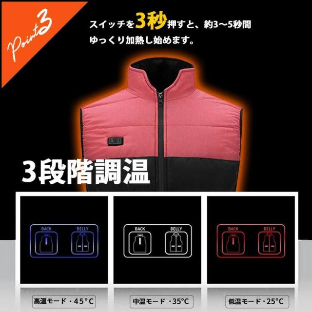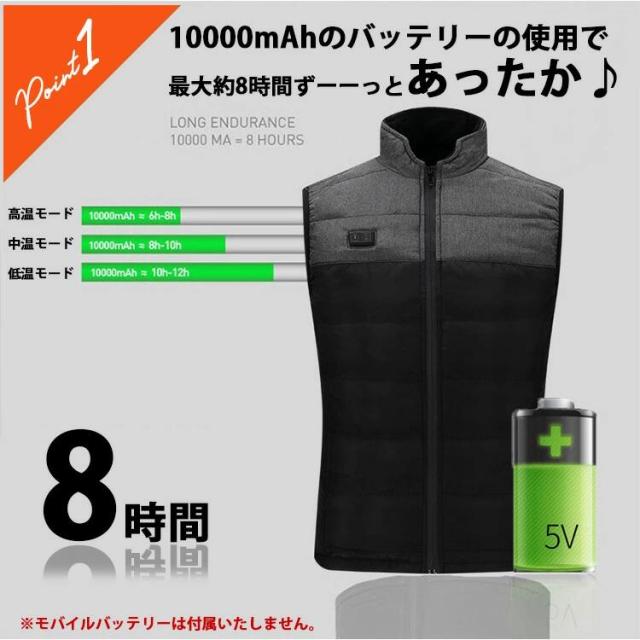 | 【商品名】 加熱ベスト 加熱服 USB充電式 前後独立温度設定可能 USB充電式 3段温度調整 保温防寒 超軽量 水洗える 電熱ベスト ヒートベスト ヒーター内蔵 ヒーター ベスト アウター モバイルバッテリー 加熱 防寒対策 男女兼用 3段階温度調整 保温 防寒 軽量 水洗い可能 |