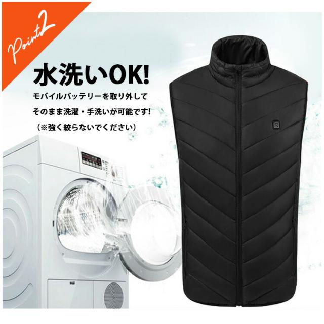 電熱 ベスト あったか 暖かい usb ヒーター内蔵 防寒着 ヒートウェア 秋冬 スキー スノボ 釣り アウトドア 軽い ユニセックス ダウンベスト ダウンジャケット ブルゾン 無地 ポカポカ バイクウェア ホットウェア カジュアル 作業着 大きいサイズ 寒さ対策 自転車 防寒ベスト