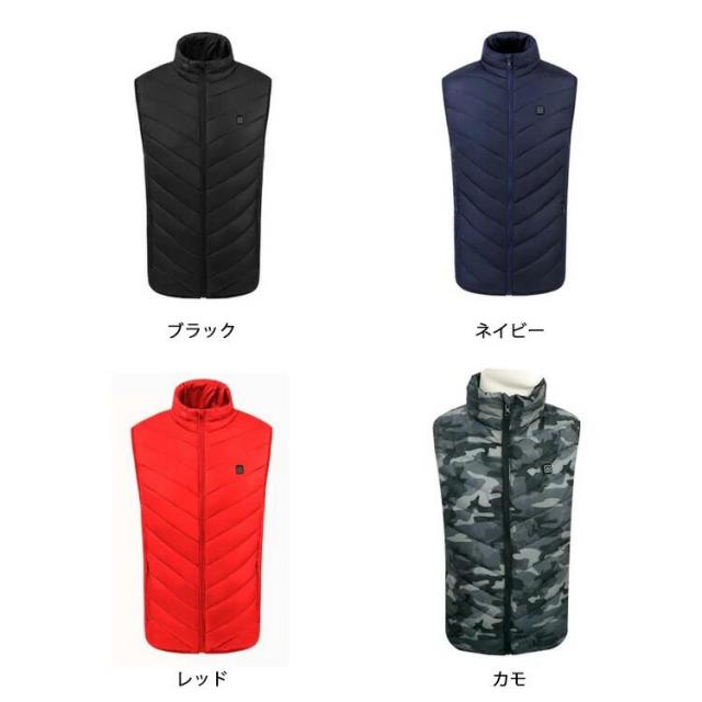 電熱ベスト 電熱ジャケット ヒートベスト メンズ レディース 電熱 ウェア 加熱ベスト 3段階温度調整 秋 冬 加熱服 USB充電式 アウター ヒーター ベスト 加熱 保温 防寒 軽量 おしゃれ カジュアル 水洗い可能 バイク キャンプ 登山 黒 赤 全4色