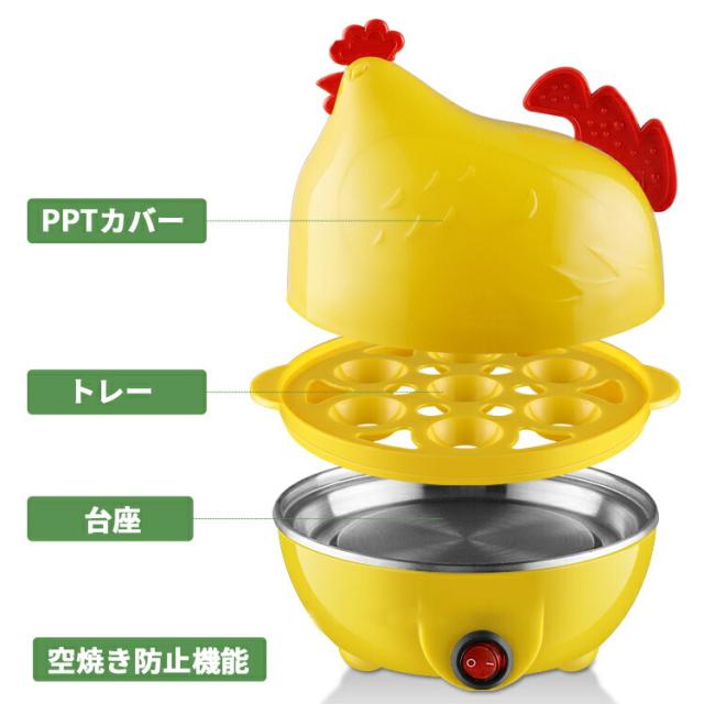 ゆで卵メーカー 電気 ゆでたまご器 自動 ゆで卵器 7個 ゆでたまごメーカー エッグクッカー 茹で卵器 可愛い かわいい 茹で玉子 半熟たまご 固ゆで対応 温泉卵 低温調理 短時間 にわとり おしゃれ キッチン家電 結婚祝い 母の日 プレゼント 送料無料