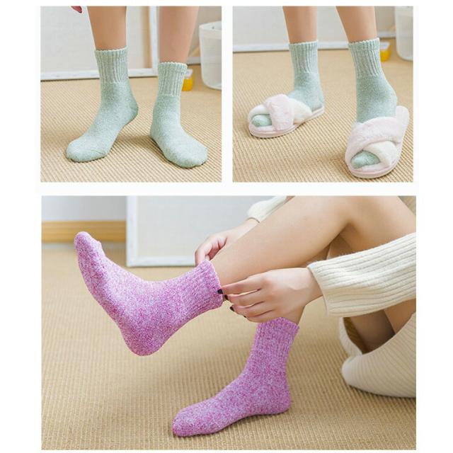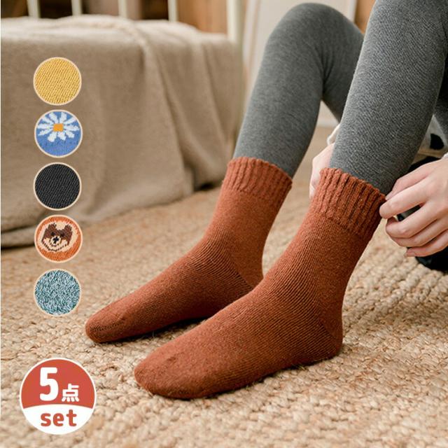 靴下 レディース ソックス 5点セット くつ下 クルー 冬 もこもこ あったか 厚手 暖かい カジュアル 無地 シンプル かわいい おしゃれ 可愛い 女の子 冷え 冷え性対策 冷えとり 防寒 保温 イエロー グリーン グレー まとめ買い