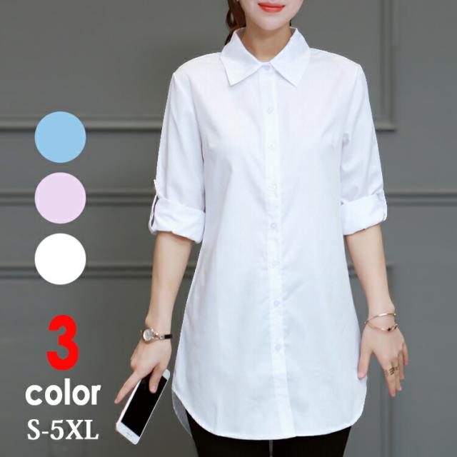 シャツ レディース 春 夏 秋 冬 長袖 ロング ミディアム丈 チュニック シャツブラウス ロングシャツ 長袖シャツ コットン 綿 大きいサイズ Yシャツ きれいめ 無地 おしゃれ シンプル ビジネス オフィス カジュアル 白 ホワイト ピンク ブルー