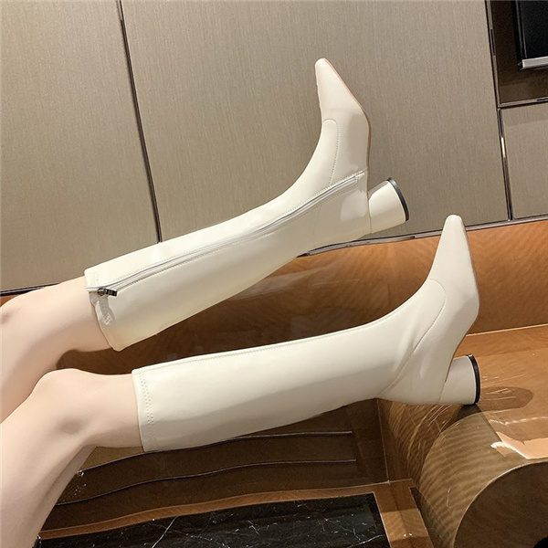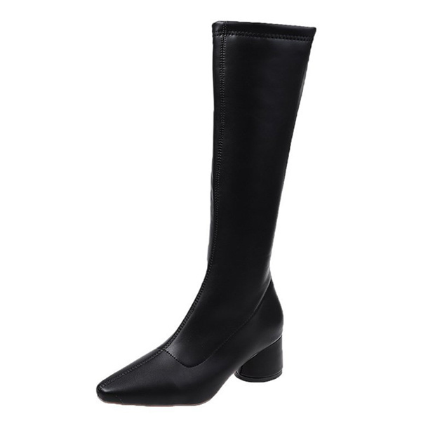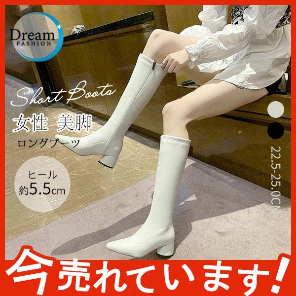 ロングブーツ レディース 美脚ブーツ 長靴 防寒 歩きやすい ロング丈 ハイヒール 履きやすい ファスナー チャンキーヒール カジュアル 秋冬