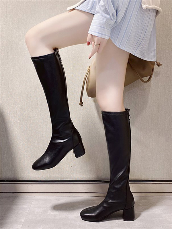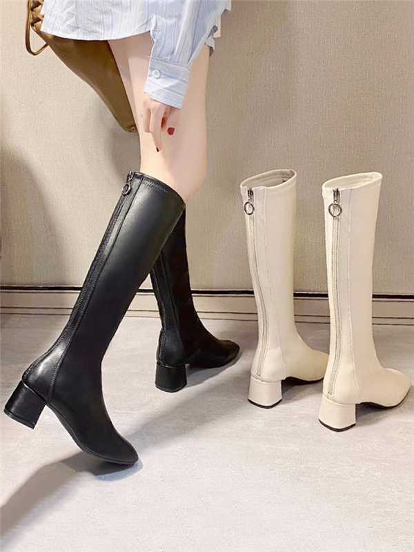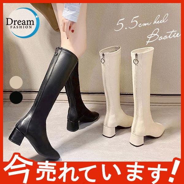 ロングブーツ レディース 美脚ブーツ 長靴 歩きやすい ロング丈 ハイヒール 履きやすい ファスナー チャンキーヒール カジュアル 秋冬 太ヒール
