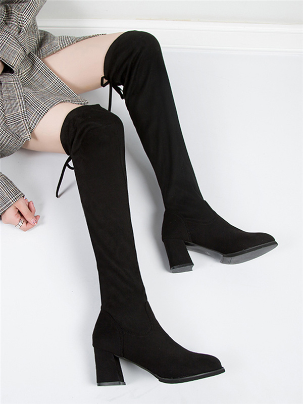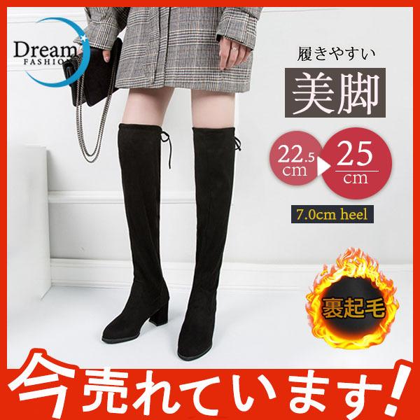 ロングブーツ レディース 美脚ブーツ 長靴 防寒 歩きやすい ロング丈 ハイヒール 履きやすい 裏起毛あり チャンキーヒール カジュアル 秋冬