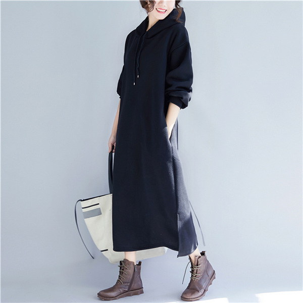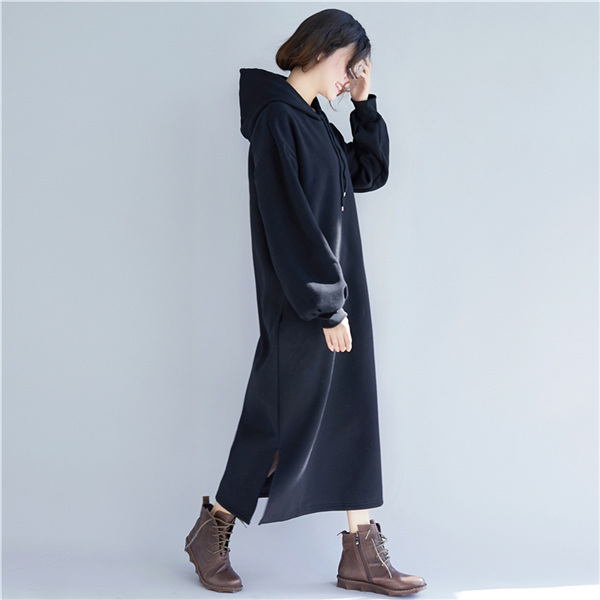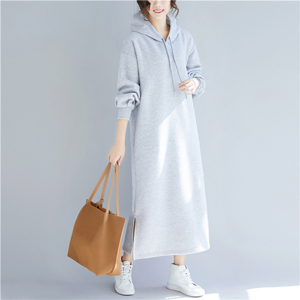レディース ロングパーカー カジュアル おしゃれ 細身 カットソー スリット入り マキシワンピース 体型カバー ゆったり 無地 プルオーバー