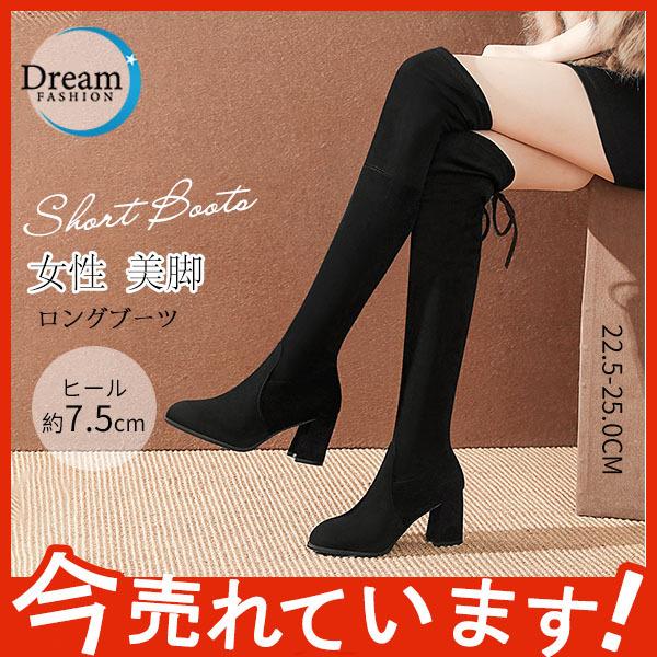 ロングブーツ レディース 美脚ブーツ 長靴 防寒 歩きやすい ロング丈 ハイヒール 履きやすい 裏起毛 チャンキーヒール カジュアル 秋冬 太ヒール